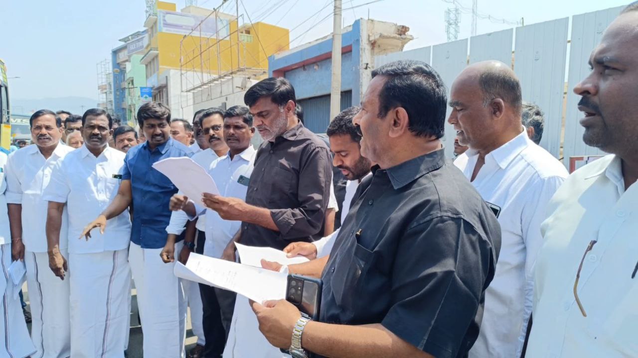 திருப்பத்தூர் மாவட்டம் திருப்பத்தூர் திருப்பத்தூர் புதிய பேருந்து நிலையத்திலிருந்து கிருஷ்ணகிரி செல்லும் சாலையில் சுமார் ஒரு கிலோமீட்டர் வரை அதிமுக முன்னாள் பத்திரபதிவு துறை அமைச்சர் கே.சி வீரமணி தலைமையில் தமிழகத்தில் போதை பொருள் மாநிலமாக மாற்றி வரும் திமுக அரசை கண்டித்தும் மனித சங்கிலி போராட்டம் நடைபெற்றது.